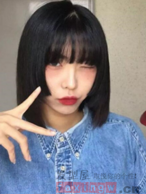 最後一款也是很減齡的一款黑色的空氣薄劉海的齊肩短髮直發髮型,白皙的臉蛋,清新可愛又不失青春氣息。