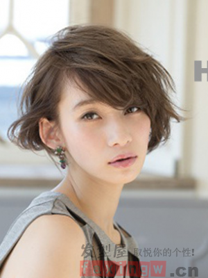 最後一款也是很受短髮控女生們喜歡的斜劉海的蓬鬆短髮燙髮髮型,白皙的臉蛋,修顏減齡又不失時尚范。