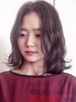 最後一款也是很受女生們喜歡的無劉海的偏分齊肩燙髮髮型,深咖色系的發色,低調又不失時尚甜美風。