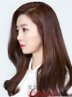 長頭髮怎么打理更好看呢?這是一款深棕色系的無劉海的披肩為長發燙髮髮型,白皙的臉蛋,時尚氣質凸顯。
