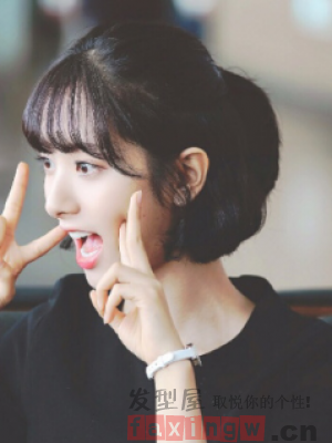 女生怎么打理頭髮更好看呢?這款自然黑色的頭髮,簡單的打理成斜劉海短髮燙髮,時尚又不失氣質范。