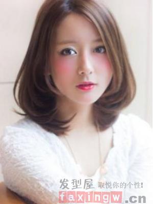 內扣的齊肩髮型,搭配上微微斜分的劉海,修顏顯嫩,甜美十足,深色的頭髮也顯得非常簡約時尚。