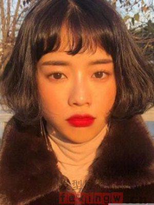 最後一款也是很受女生么喜歡的一款齊劉海的蓬鬆發尾內扣設計的短髮,白皙的紅潤臉蛋,時尚減齡更百搭。
