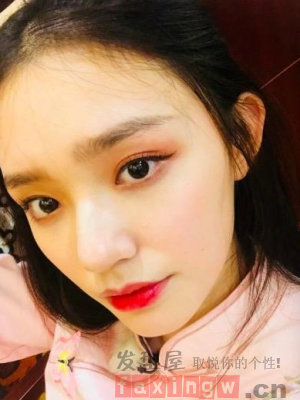 髮際線再高本著“三庭五眼”的基本要求塑造髮型也是十分容易的。這款長發髮型將劉海後梳至耳朵後面,將整個白皙的面孔透露出來,深色的口紅更顯嫵媚。