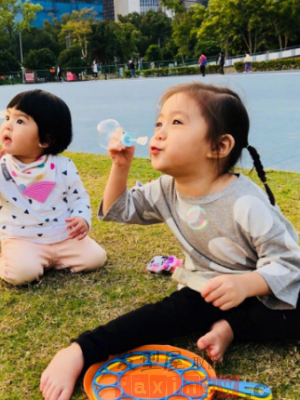半扎丸子頭吐舌頭的咘咘真真是個小萌神,小編忍不住要提醒賈靜雯夫婦,一大波觀眾要去組團去偷孩子了。