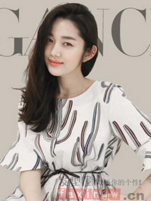 韓風十足的長發美女,露出一側耳朵的長髮於偏分劉海的猶抱琵琶半遮面的羞澀感形成鮮明對比,不缺乏時尚的個性,展現出輪廓的美感。微卷設計更是添加了小潮流氣。