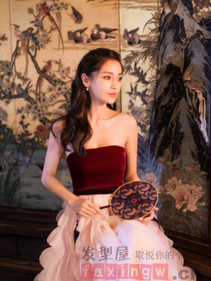 自然的捲髮做了一個公主編髮髮型,搭配著一襲合身的抹胸禮服,還有那背後古香古色的山水畫,更顯古典文雅氣質,這樣的一幅畫面也是讓人不敢驚擾的啊!