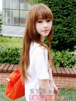 這款女生長發採用的是中分無劉海設計造型,搭配左右時尚的設計感,帶來無與倫比的小清新。可愛時尚的女生髮型,刻畫了精緻的五官,唯美感很是強烈。