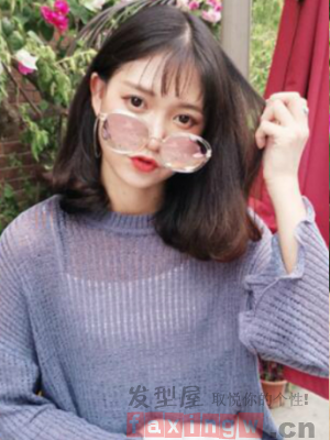 一款稍長的齊肩長發也能做成好看的造型,發尾略微蓬鬆,能夠有著很好的修顏效果,那一層眉上劉海更是多了幾分的嬌俏感,清新甜美的少女總是這么的清純動人。
