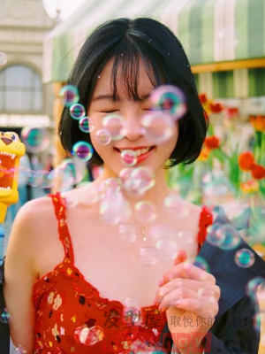 黑色的齊臉短髮有著最清新美好的氣息,就如同著七彩泡泡般的絢爛,那一層空氣劉海更是有著青春甜美的氣息,這個夏天就是這么的清純動人。