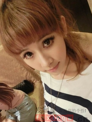 帶有一絲的凌亂感劉海,很讓人心動!整齊夾雜著略微彎曲弧度的齊劉海遮擋了額頭,露出明亮清澈的眼眸,更好的修飾了稍長的臉龐,亮眼的發色讓整個造型增加了成熟感。