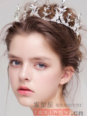 西式婚禮上新娘就像一個高貴的公主一樣,簡單的盤發髮型搭配著一個水晶皇冠的裝飾,整個人都散發著滿滿的精緻優雅的氣質,髮型不需要更多的造型,就這樣簡單搭配就能呈現出最美的氣質。