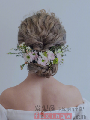 時尚精緻的一款編髮髮型上有著更多的清新唯美感,那簡單清新的幾朵鮮花作為裝飾,更多幾分的清新田園魅力,淺色的發色能為你帶來滿滿的心動感。
