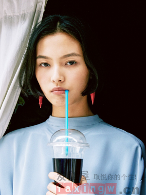 這一款的黑色短髮,帶著一點的微翹的設計,黑色的發色更顯膚色白皙自然,搭配著而易見簡單卻時尚的服飾,更為驚艷動人!