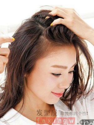 第三步:用捲髮棒從右側開始,將頭進行單簡單的卷燙設計,最後將所有的頭髮都簡單的燙一遍,讓頭髮更加的蓬鬆有型。