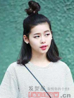 蘋果頭是韓國比較時尚的一款髮型,因為將劉海紮起來顯得比...