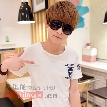 冬日男生弄什麼髮型好看呢?一頭栗色系的頭髮,簡單的修剪成斜...